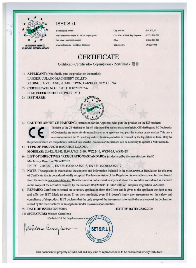 • 获得“多功能铲车抓掉挖一体机”专利证书,开始生产两头忙,搅拌斗装载机,同年更名莱州巨浪机械有限公司